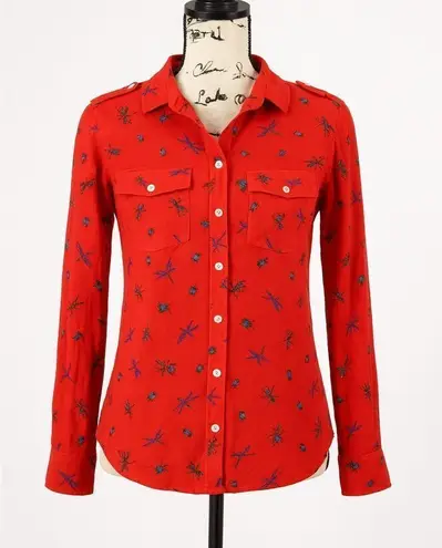 0039 Italy Women’s Orange Button Down Blouse Size M | Insect Print Long Sleeve Stand out in style w... Show more