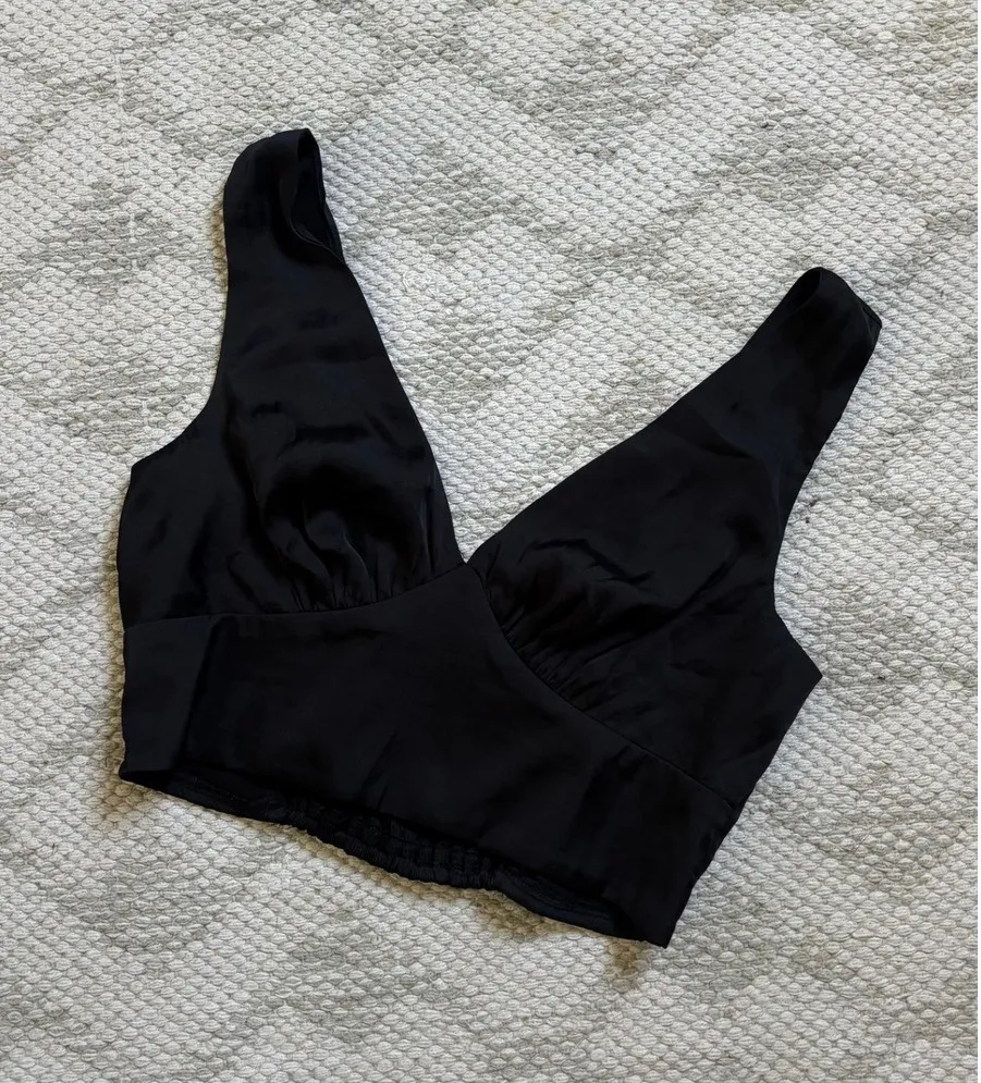 Strike a pose in this chic black crop top! With a flattering V-neckline and sleeveless design, this... Show more