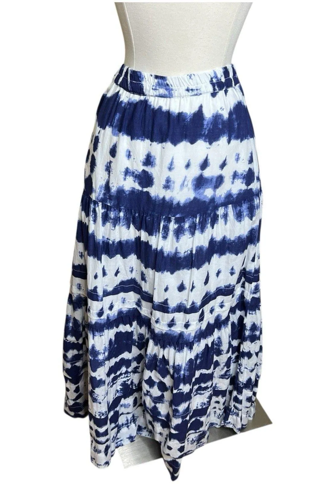 The Pyramid Collection Midi Skirt Womens Large Blue White Tie Dye Pull On Boho - $35 - From Laura