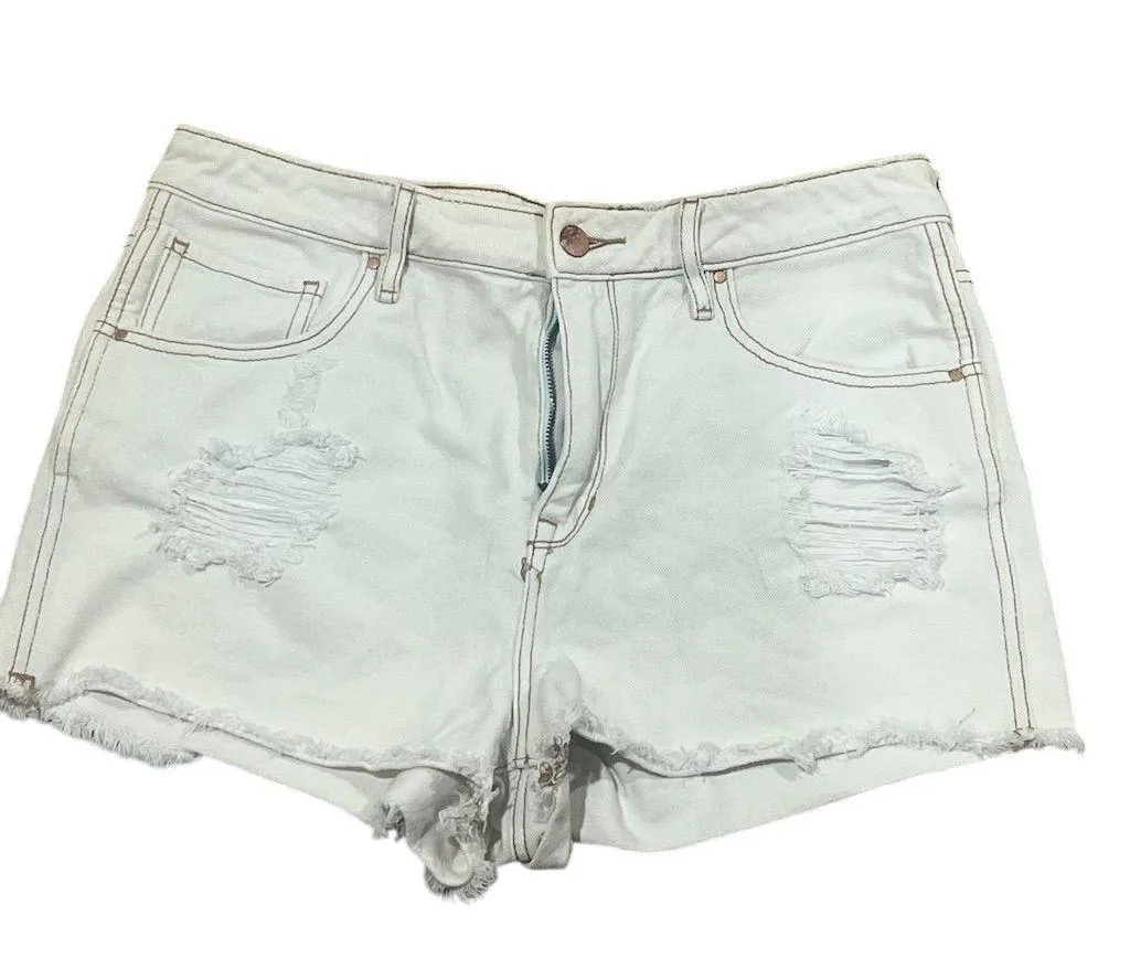 The Bullhead Denim Co Cut-Off shorts in ivory are designed for women and feature a high-rise fit wit... Show more