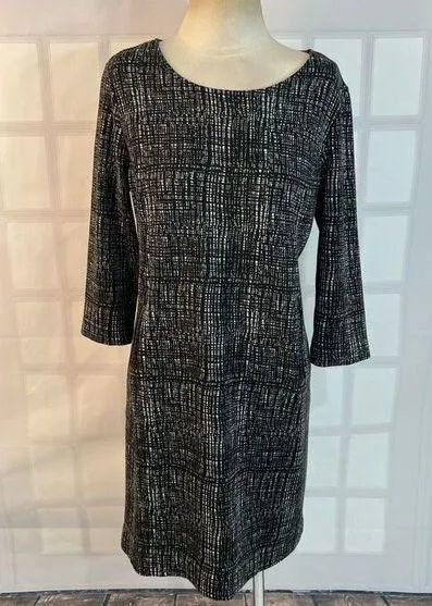 Talbots 3/4 Sleeves Black White Print Stretch Sheath Dress Size 12P Embrace timeless sophistication... Show more