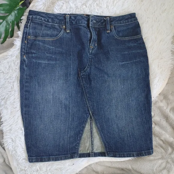 Denim Jean skirt Stretch pencil style By Banana Republic Size 4 Measures 15" flat across waist 18"... Show more