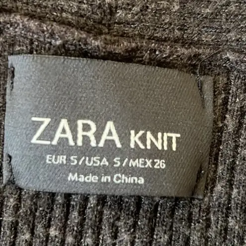 Zara Knit Grey Cardigan. 3/4 Sleeves Ribbed Knit Sweater