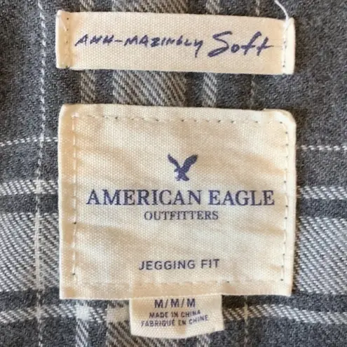 American Eagle Outfitters ‘Ahh-mazingly Soft’ brushed plaid flannel top. ‘Jegging fit’, half button... Show more