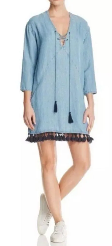 Rails Women's Alicia Denim Chambray Tassel Blue Shift Dress Linen Size Small - $26 - From Michaela