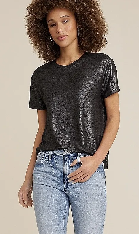Maurices Edgely black shimmer tee. In excellent condition! Crew neckline. Short sleeves. Relaxed fit... Show more