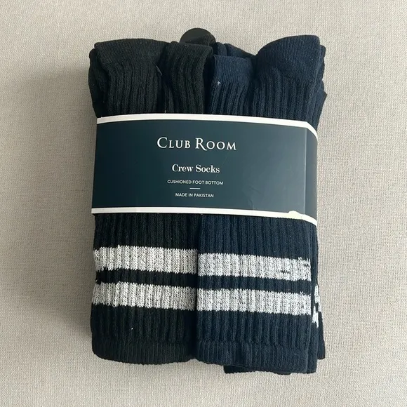 8-Pairs Club Room Black & Navy Crew Socks, Cushioned Size 10-13 New w/Tag - $30 New With Tags - From Aadys