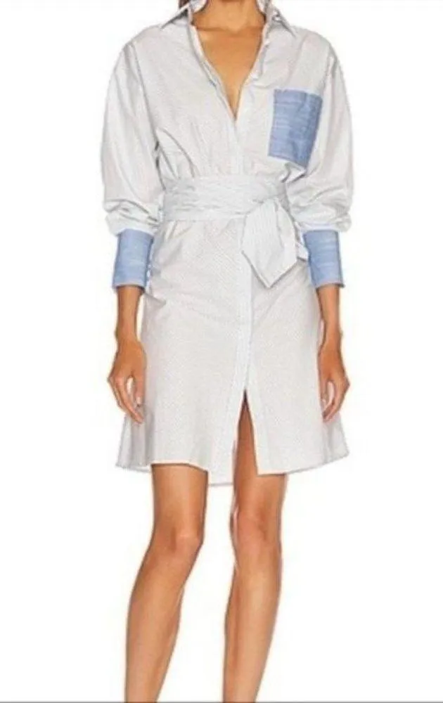 Frame Stripe wrap shirt dress, long sleeve FRAME Stripe wrap shirt dress, long sleeve 100% cotton.... Show more