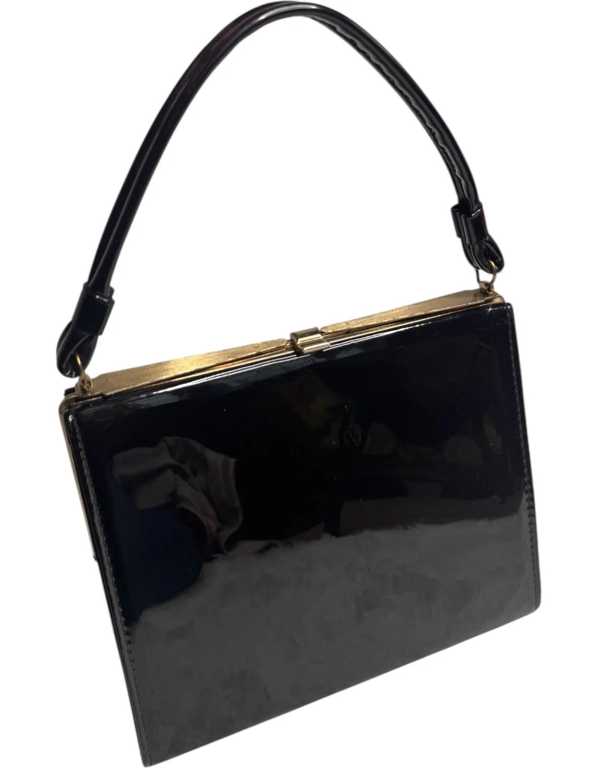 Sophisticated vintage Aetna patent leather handbag from the late 1950s–early 1960s. Features a gloss... Show more