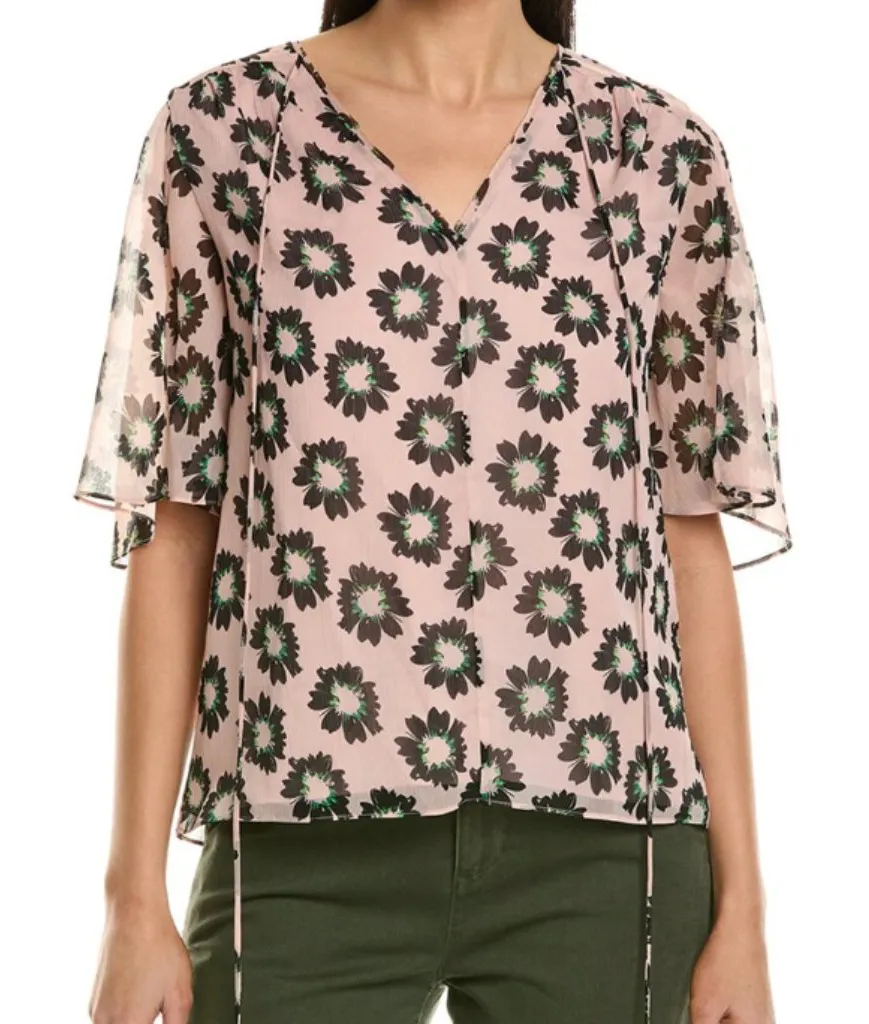 Ted Baker London Harlynn Split Sleeve Flutter Sleeve Floral Top Neck Tie Sz 1 (US 4) NWT Condition:... Show more