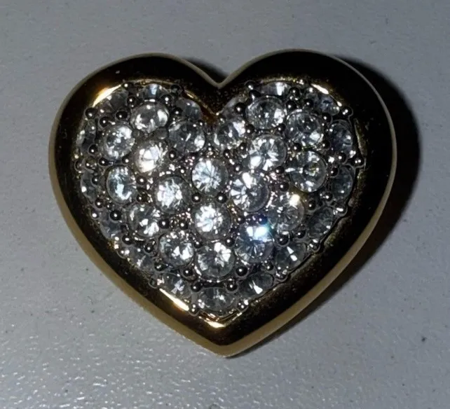Vintage SWAROVSKI Swan Signed Pave Crystal Gold Tone Heart Brooch Pin - $45 - From ivette