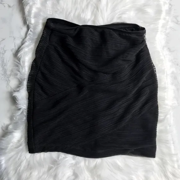Great condition. A mesh layered mini skirt. Super cute. Waist: 12.5 in unstretched( very stretchy),... Show more