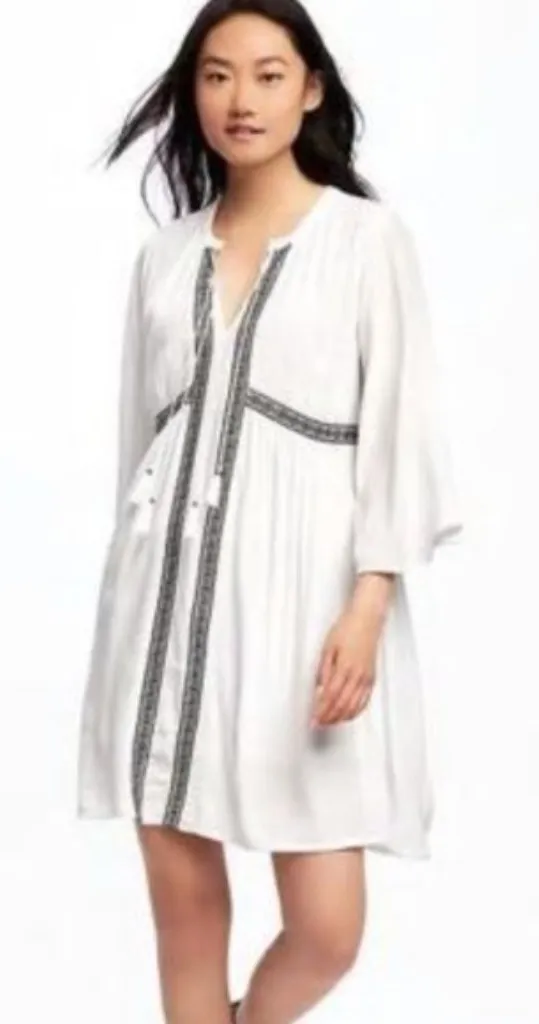 Old Navy Boho White Calla Lily Embroidered Detail Peasant Babydoll Dress XXL NWT Size XXL New With T... Show more