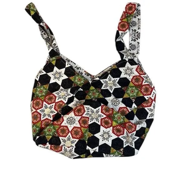 The fabric looks quilted but it isn’t. Well made by hand this tote holds a ton! No condition issues noted. Approx measurements: width 20” height 15” drop 9.5” bottom of bag is 15” by 11”.
