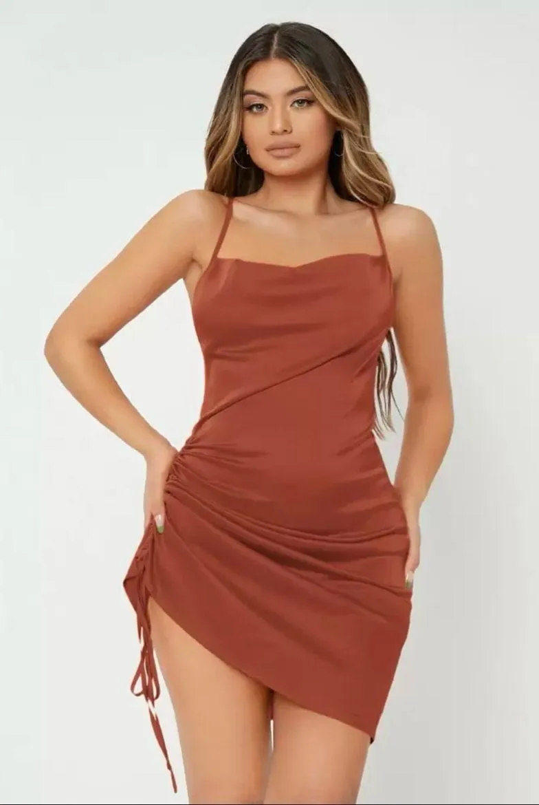 Shein Brown Satin Dress Size XS - $9 - From Jennifer
