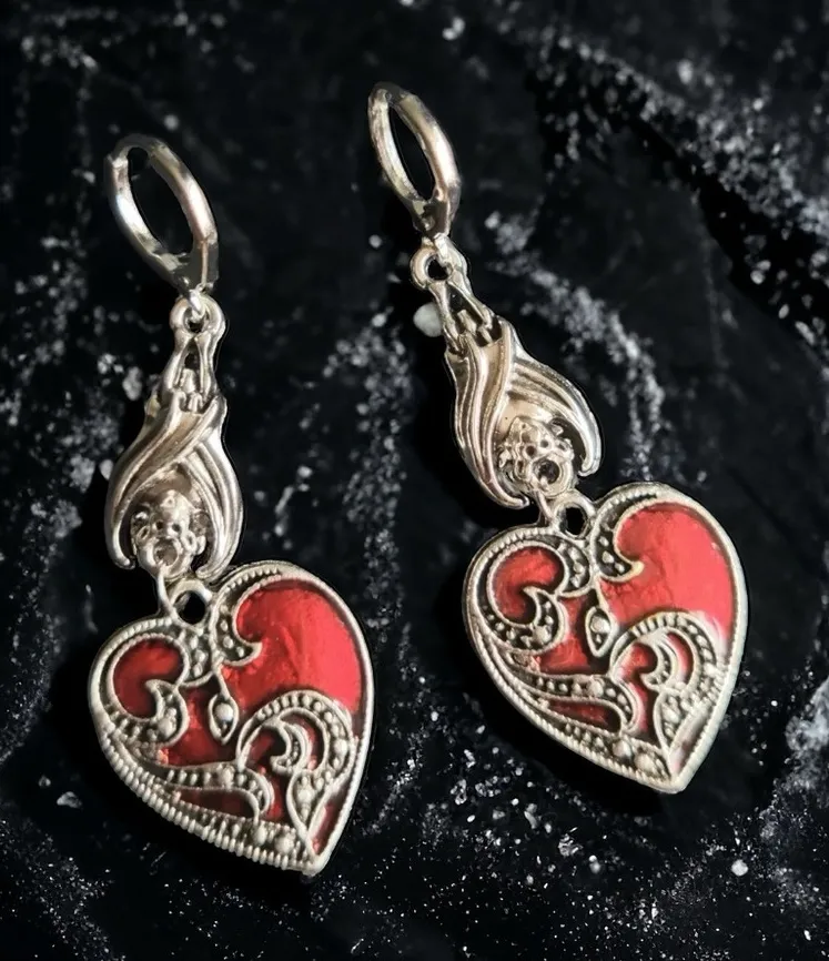 1 Pair‎ Gothic Bat Heart Love Shape Pendant Round Buckle Silver Plated Earrings - $13 New With Tags - From Mon