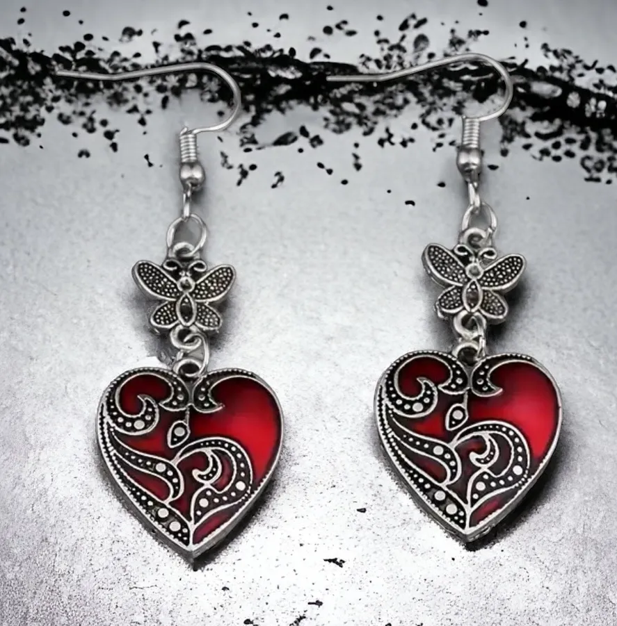 1 Pair Gothic Retro Style Punk‎ Butterfly Red Heart-shaped Zinc Alloy Earrings Silver - $13 New With Tags - From Mon