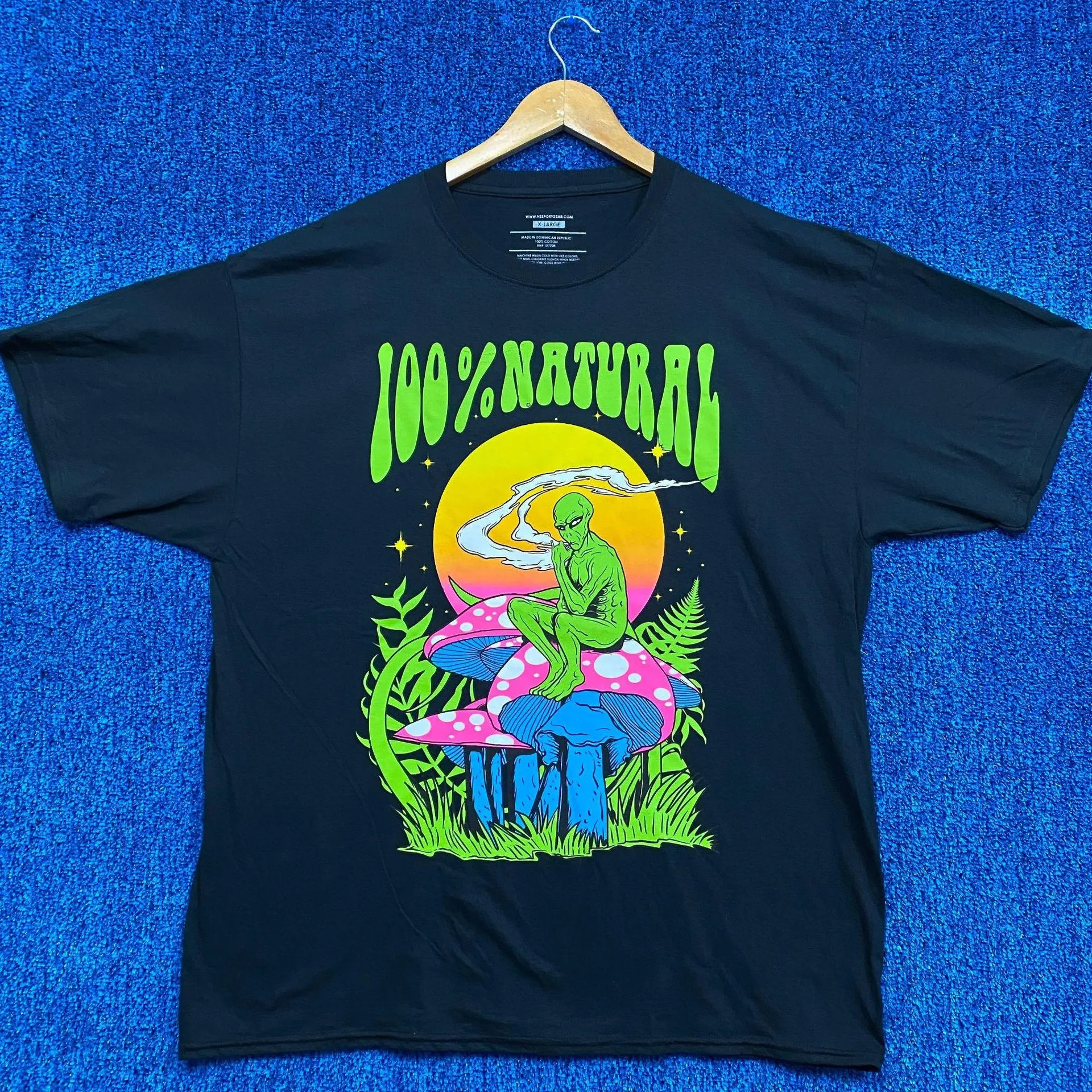 100% Alien t-shirt size extra large. The shirt new great condition has graphic malfunction. Awesome design stunning finish. Perfect for fans of the legendary figure Weed Alien. Measures 24 inches pit to pit 30 inches long