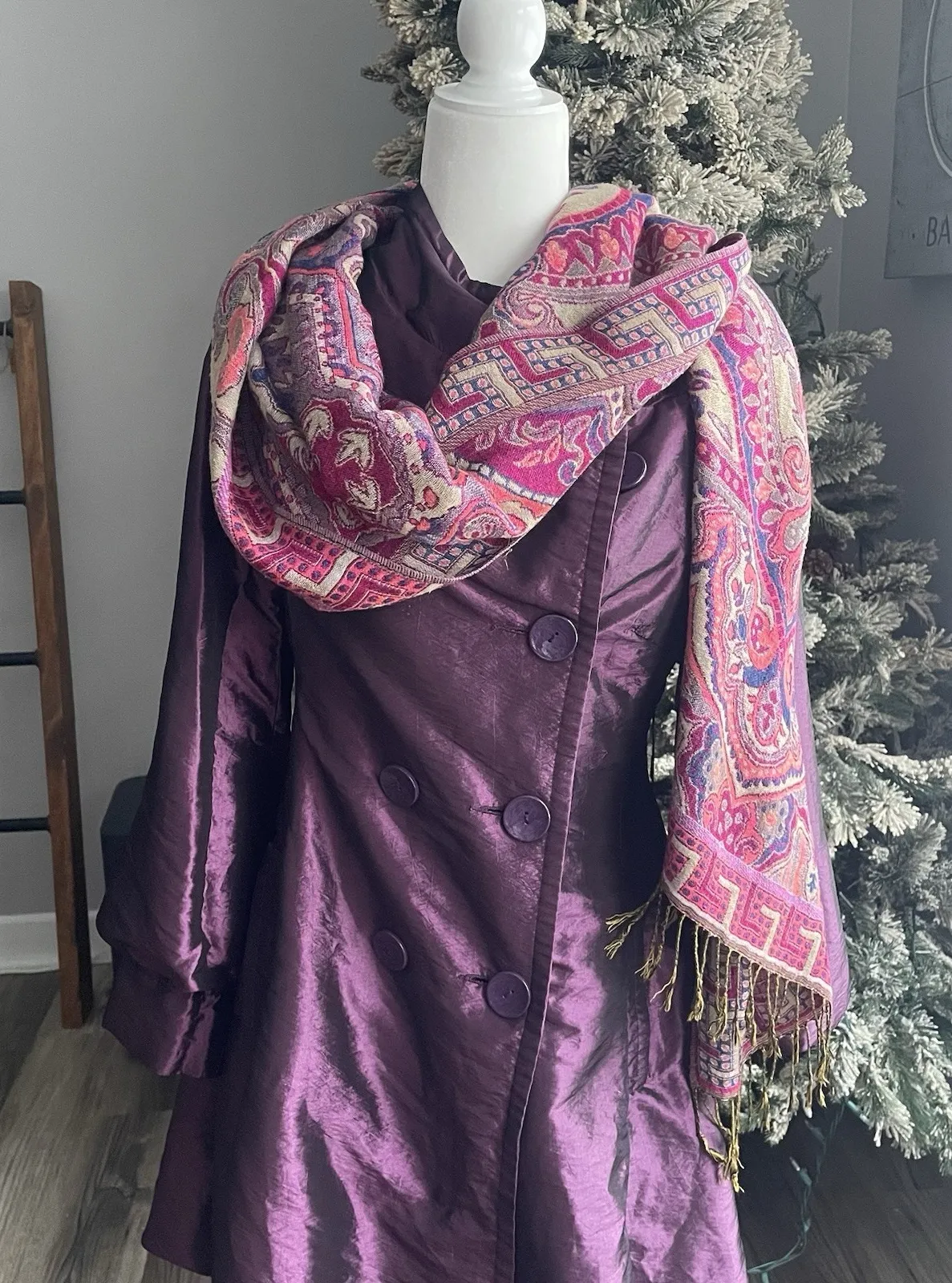 100% Cashmere Pashmina Shawl paisley boho tasselled Warm soft lux Purple - $42 - From Alysa