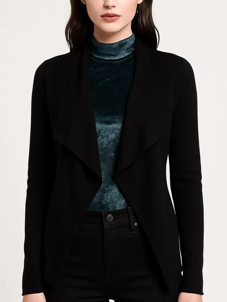 Elevate your wardrobe with this luxurious 100% cashmere waterfall cardigan in classic black. Incredi... Show more
