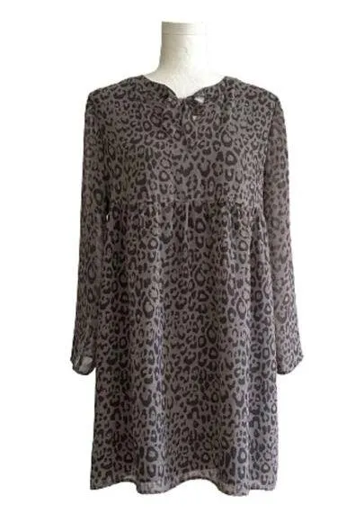 Loft Gray Black Leopard Animal Print Empire Waist Baby Doll Mini Dress Size XS EUC Features:... Show more