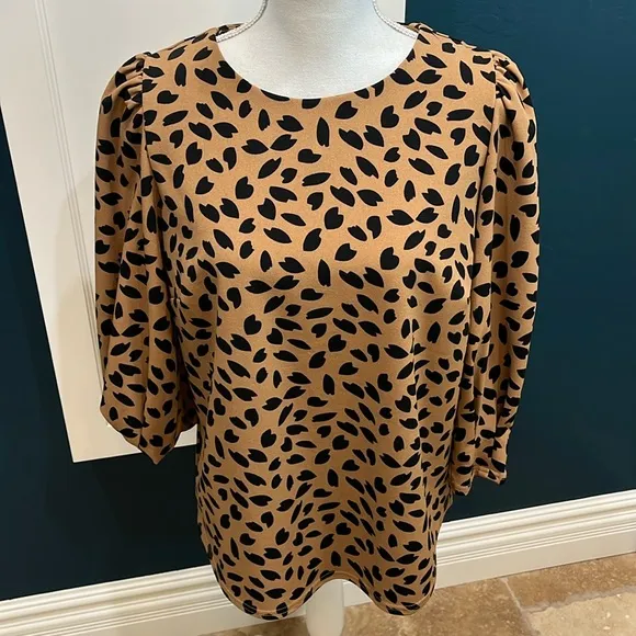 Melloday brown/black 3/4 sleeve scoop neck blouse Brown Size M - $17 - From Sondra