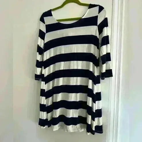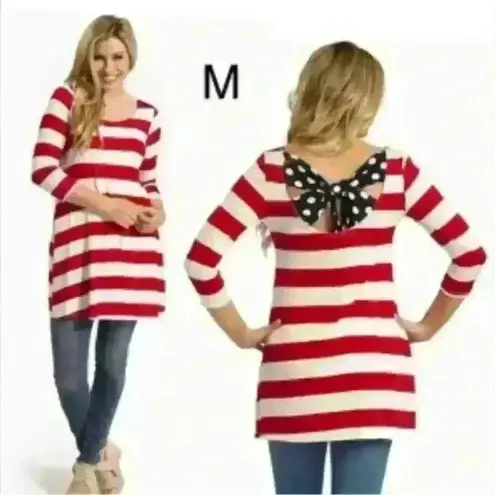 12pm by Mon Ami Womens Quarter Sleeve Striped Dress. Bow Tie Back. Americana. Size: M. Could be worn as a tunic if you a taller. Previously worn but excellent condition. No rips, stains or defects. 18” wide 31” long 17” sleeve