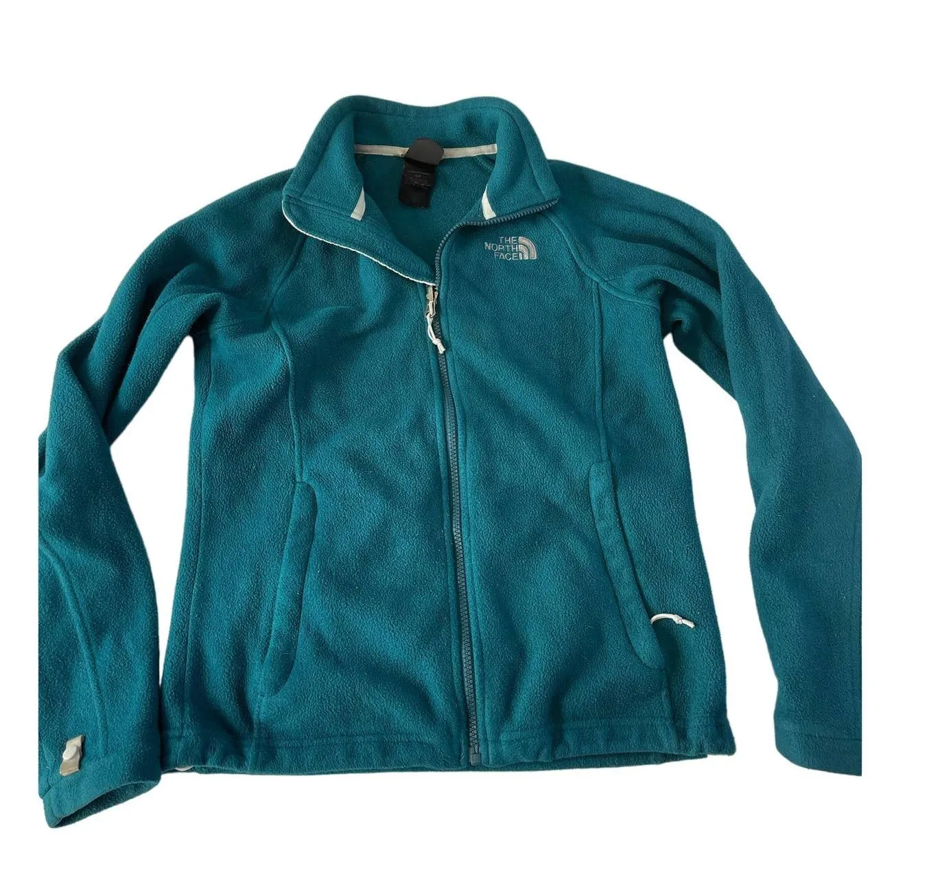 Women’s Fleece Teal North Face Jacket sz S small spot that shows a stain, but it’s not too noticeabl... Show more