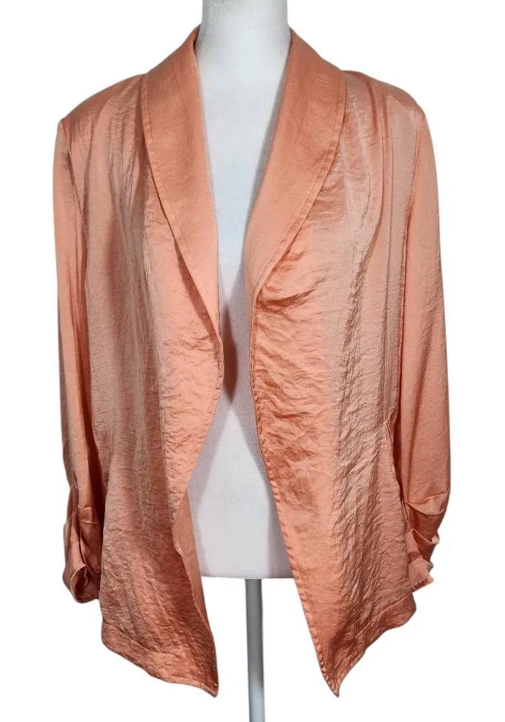 143 Story crinkled satin open blazer with 3/4 sleeves, shoulder pads, and pockets. Make me an offer!... Show more