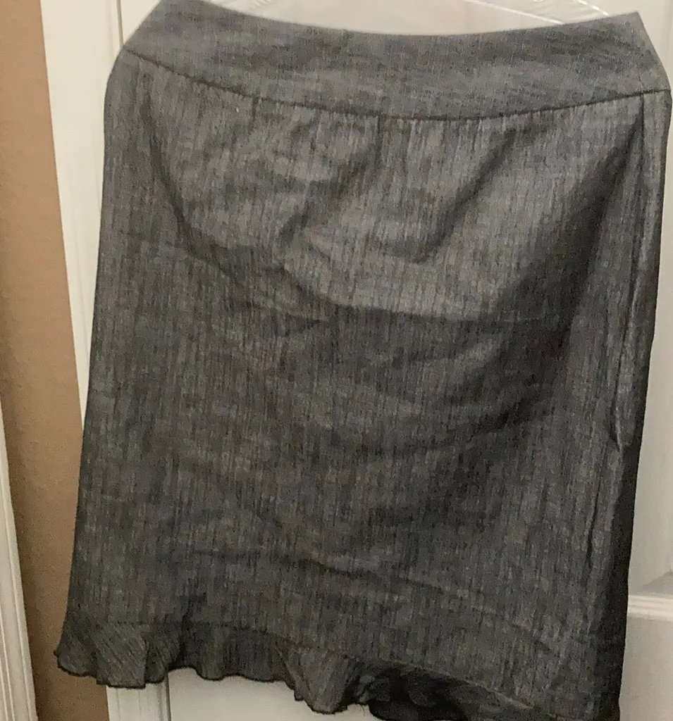 This is a ladies unlined skirt with a ruffled hemline A0026