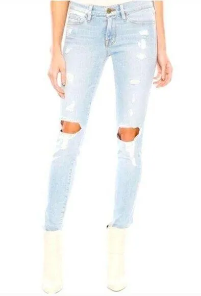 Frame Le Skinny De Jeanne Distressed Light Wash Skinny Jeans Very good used condition, minimal sign... Show more