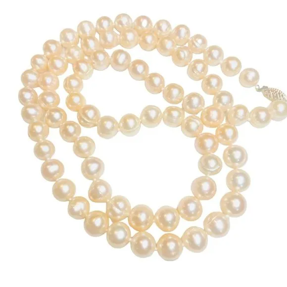14K Yellow Gold Clasp Peach Freshwater Cultured Pearl Hand Knotted Necklace 26” - $162 - From Jenns