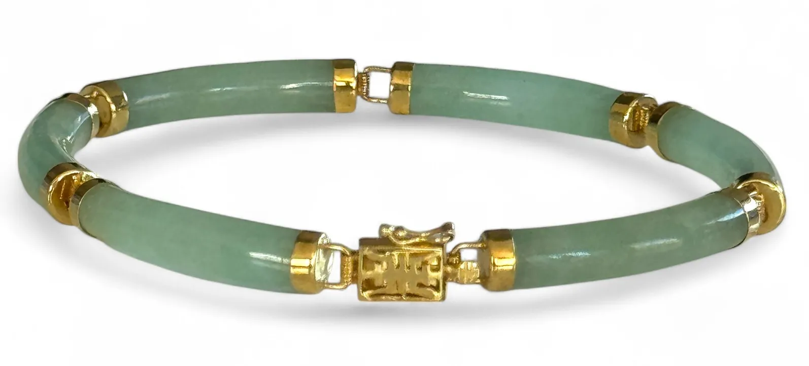 14K Yellow Gold Natural Jadeite Jade Bracelet. Marked 14k / 585. Excellent condition. This item will... Show more