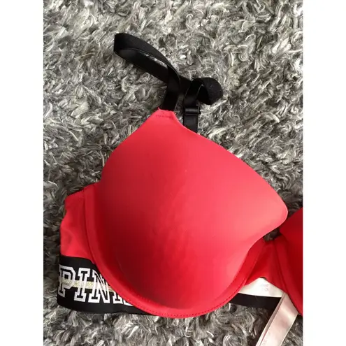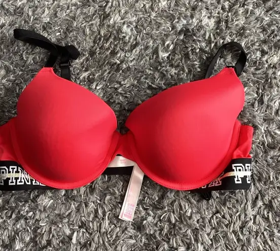Victoria Secret PINK Bra Size 36c Red Underwire Pink Logo On Band - $14 - From Thrifted
