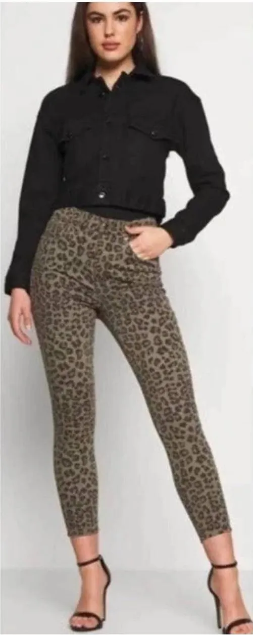 Unleash your inner wild child with these striking Good American leopard print jeans. Crafted to hug... Show more
