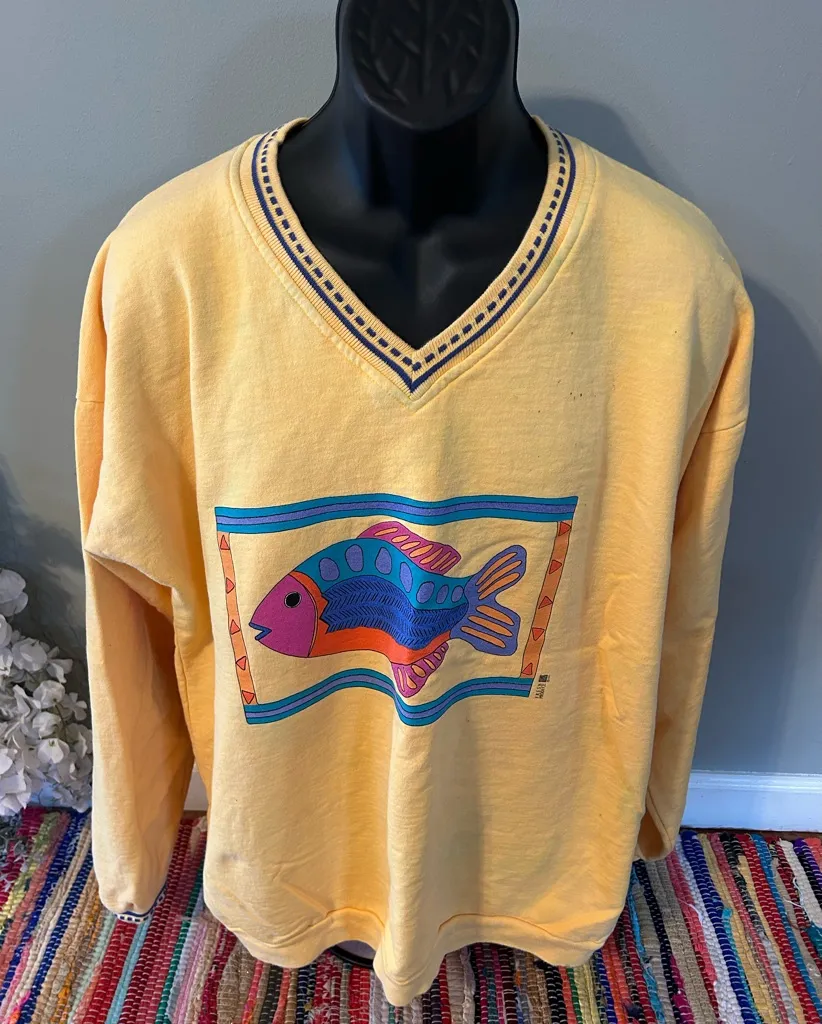 Vintage 90s 1995 Colorblock Fish Sweatshirt Perfect for the beach house, nautical, tropical, vacatio... Show more