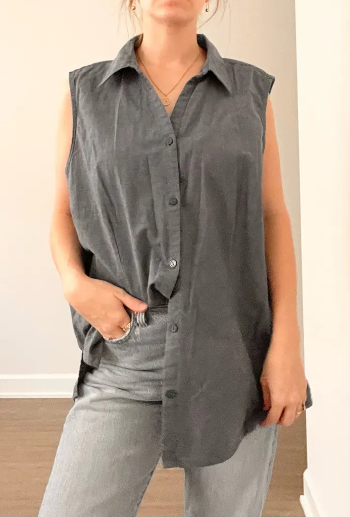Basic Editions Blue Sleeveless Button-Down Cotton Shirt Gray Size XL - $14 - From BrynnsPoshPearls