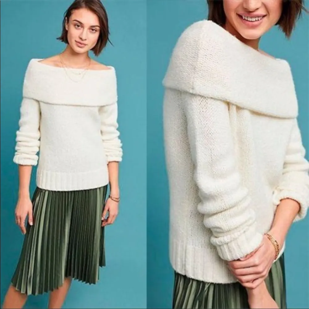 Soft off the shoulder cream sweater Tiny pull on the upper back most likely covered by your hair -... Show more