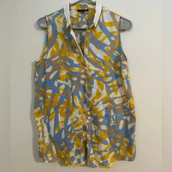 NWOT Lafayette 148 100% linen leaf print button up collared blouse sleeveless - $28 - From Sassia