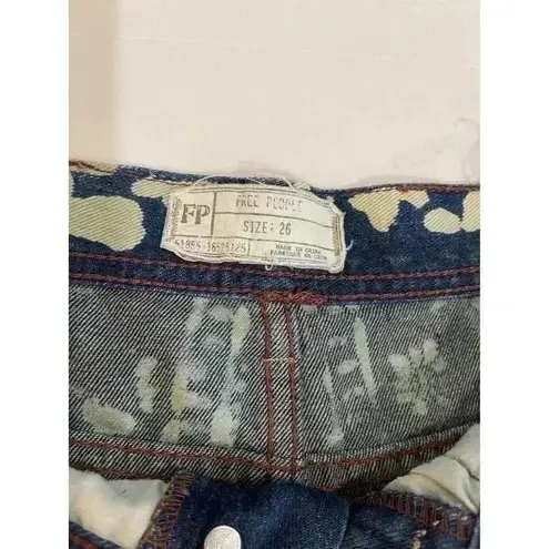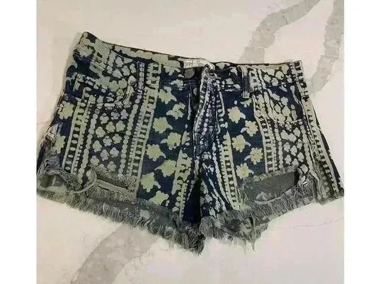 Womens Free People Ends Meet Printed Denim Cutoff Size 26 Mantra Bali Discharge Shorts Distressed I... Show more