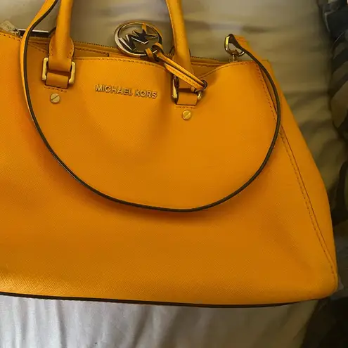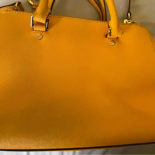 Michael Kors Sutton medium leather satchel in yellow saffiano leather with gold hardware. It featur... Show more
