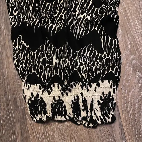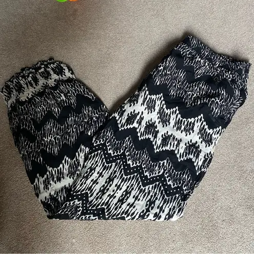 Material 100% VISCOSE Your go to pants by Claudia Richard Black and White Patterned pants Soft Stretch elastic waist super comfy pant | lightweight | lightweight elastic at ankles for tapered look | loose fitting Size 3X 0139