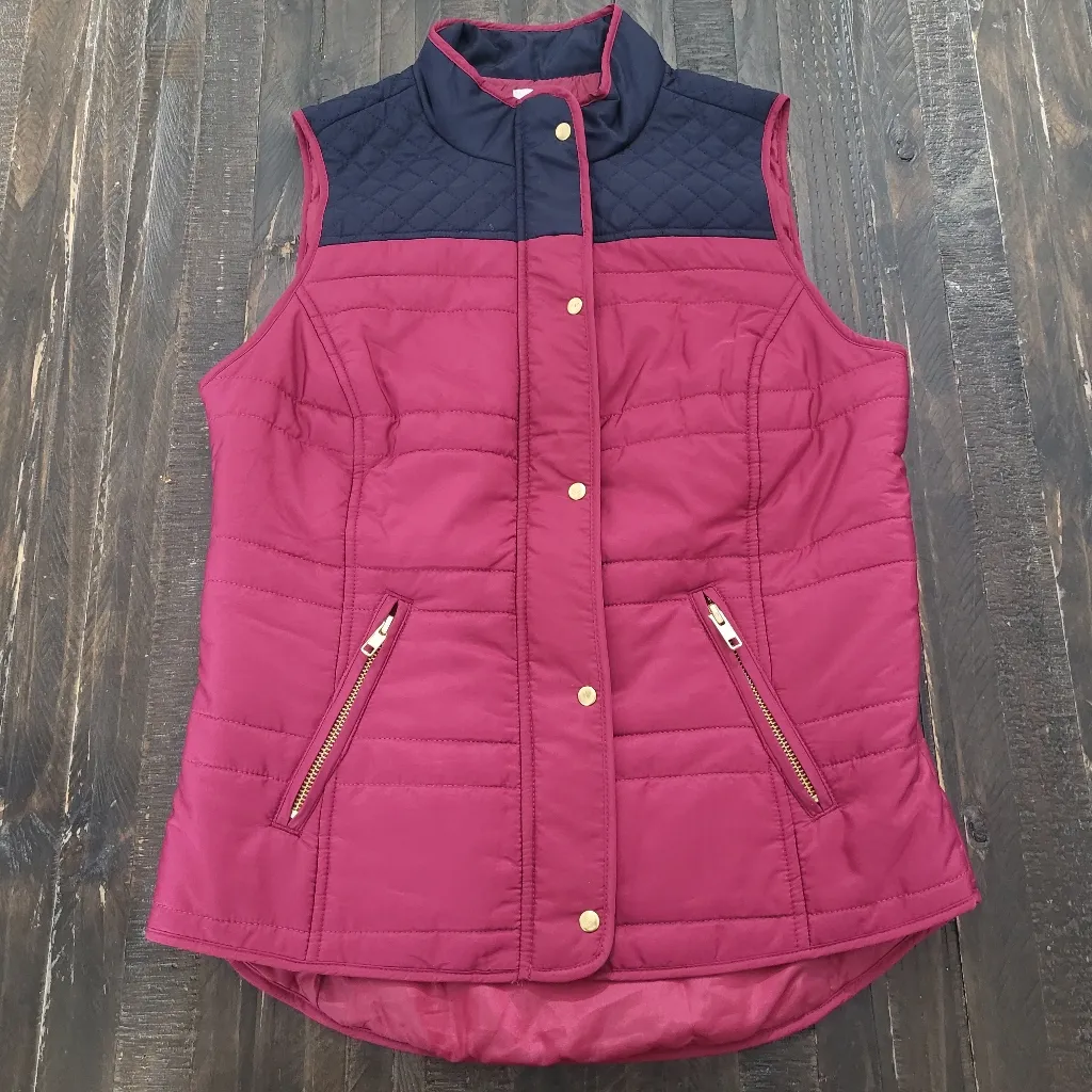 Crown & Ivy Puffer Vest Women Size PP Quilted Full Zip Snap Button Lightweight Color Fuchsia