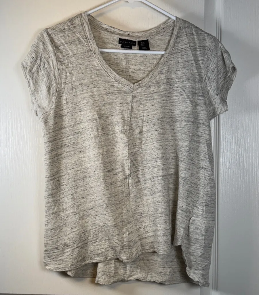 Tahari 100% Linen Gray V-Neck Shirt Size Med EUC #2028 - $21 - From Vir