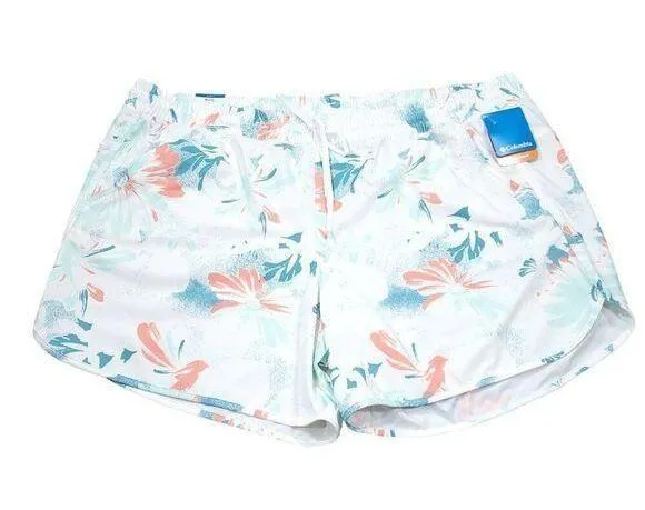 Women's Columbia Bogata Bay Omni-shade printed stretch shorts 6" in white, blue, green, and red mult... Show more