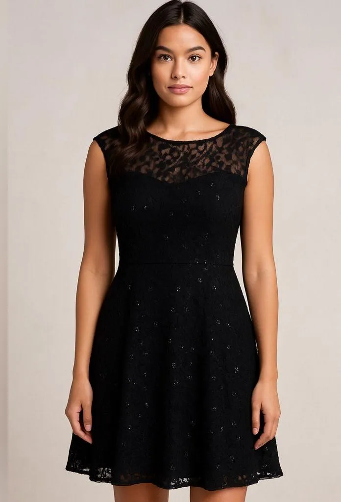 Lauren Ralph Lauren Elegant Black Lace Cocktail Dress with Sequins – Sleeveless Party Evening Dress... Show more