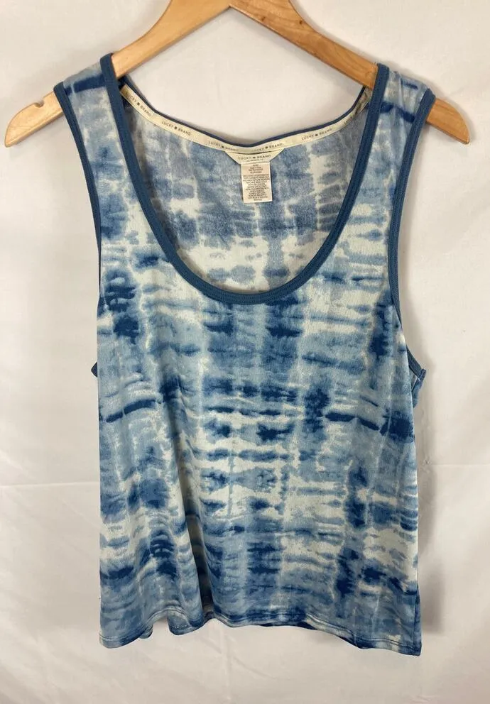 Lucky Brand Blue Tie Dye Tank soft knit fabric blue and white great shape