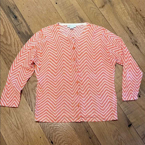 Garnet Hill Merino Wool Cardigan Geometric Stripe Dot Salmon Pink 3/4 Sleeve M Size M - $34 - From Lysander