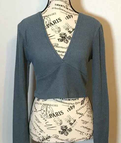 Wild Fable crop top gorgeous steel blue color with a V Neck & Long Sleeves is crazy flattering. Pit... Show more