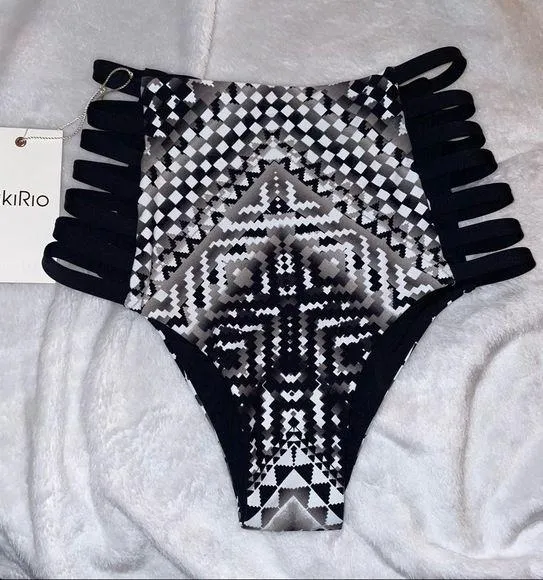 KikiRio Swimwear High Waist Cage Bottom Reversible Bikini Bottom XS Black - $30 New With Tags - From Kimberley